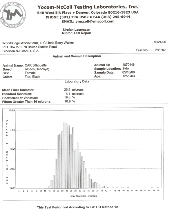 Quality begets quality and Silhouette is a perfect true black example! Her sire, Axtion Jaxon, is a 4 time Reserve Black Color Champion as well as winner of numerous first place fleece awards. Of course it was his black sire, CPeruvian Jaxon, that we selected from the last Peruvian importation that did so well for WoodsEdge in the early days!